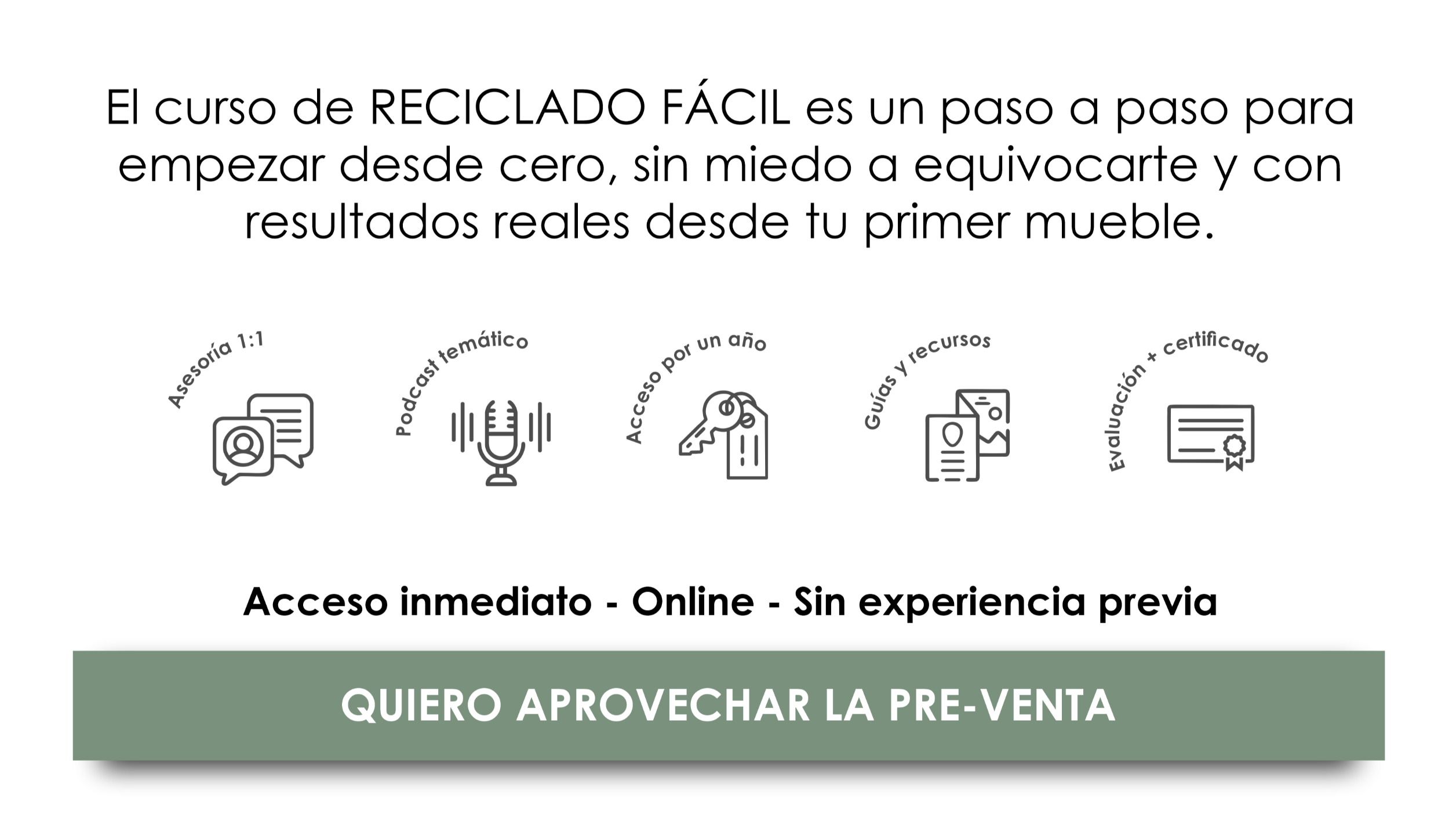 Reciclado Fácil es un curso digital paso a paso para personas que quieren reciclar muebles sin experiencia previa. Aprendés con un método claro, materiales accesibles y decisiones bien explicadas, para dejar de improvisar y avanzar con seguridad.